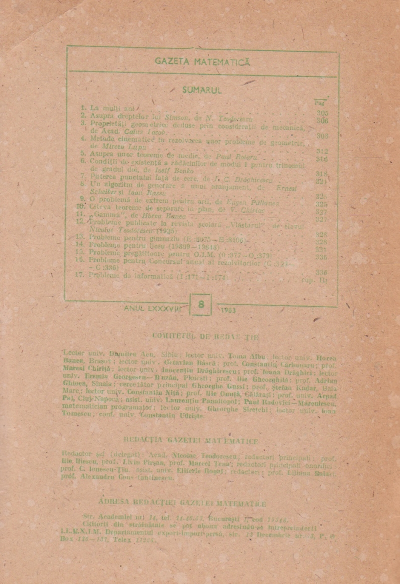Gazeta Matematica, 6 numere (Septembrie 1967, Ianuarie-Aprilie si Iunie 1968)