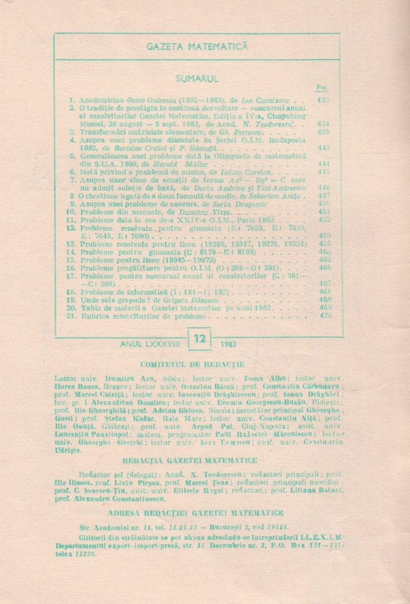Gazeta Matematica, 6 numere (Septembrie 1967, Ianuarie-Aprilie si Iunie 1968)