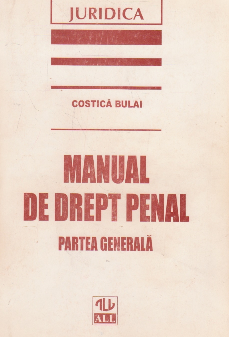 Comandă online cartea "Manual de drept penal. Partea generala" la 26,40 lei scrisă de Costica Bulai, tiparită la editura ALL în anul 1997 cu un număr de 647 pagini. cu plata ramburs sau online cu cardul. Momentan titlul "Manual de drept penal. Partea generala" nu este disponibil însa vă puteți înscrie pentru a fi notificat în momenul reaprovizionarii.