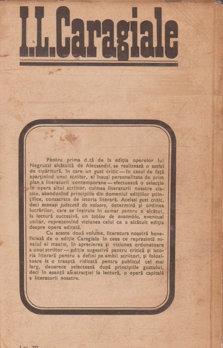 Comandă online cartea "Opere alese (Caragiale)" la 12,90 lei scrisă de Ion Luca Caragiale Marin Preda, tiparită la editura Cartea Romaneasca în anul 1972. cu plata ramburs sau online cu cardul. Momentan titlul "Opere alese (Caragiale)" nu este disponibil însa vă puteți înscrie pentru a fi notificat în momenul reaprovizionarii.