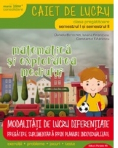 Matematică și explorarea mediului - Clasa pregătitoare este elaborată conform programei în vigoare aprobate de M.E.N. prin O.M. nr. 3418/19.03.2013. Conținuturile sunt structurate pe niveluri de învățare diferențiate și pe trepte progresive de dificultate, iar secțiunile destinate completării portofoliilor elevului și profesorului sunt marcate ca atare.