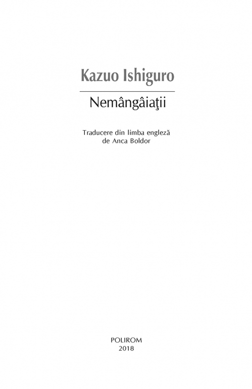 Comandă online cartea "Nemângâiaţii" la 63,40 lei isbn 9789734668717 scrisă de Kazuo Ishiguro, tiparită la editura Polirom face parte din colecția BIBLIOTECA POLIROM -> Actual. Cartea poate fi livrată în circa 5 zile cu plata ramburs sau online cu cardul.