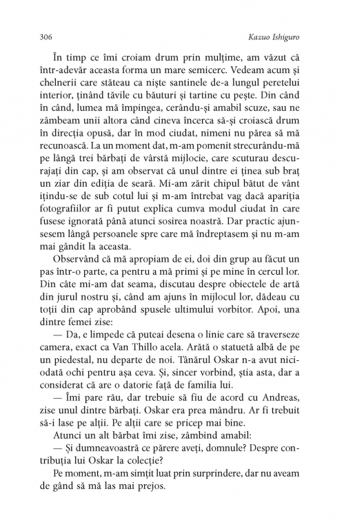 „Romanul lui Ishiguro pare o călătorie prin viaţă: scopul ei nu e niciodată limpede, toate cîte se petrec sînt rodul inexplicabil al capriciului, destinaţia – întunecatul, pustiul necuprins al unor suflete înstrăinate.” (Publishers Weekly)