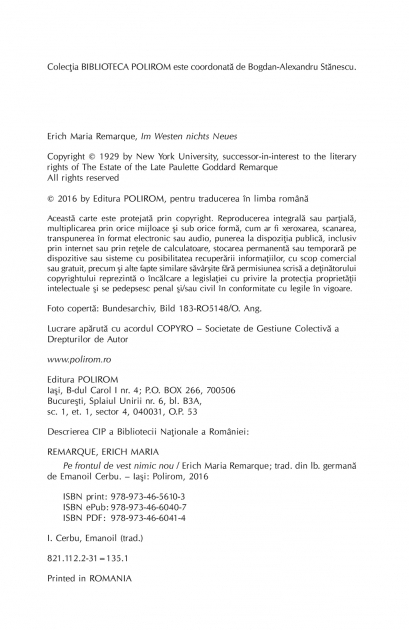 Esential. cu plata ramburs sau online cu cardul. Momentan titlul "Pe frontul de vest nimic nou" nu este disponibil însa vă puteți înscrie pentru a fi notificat în momenul reaprovizionarii.">