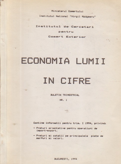 Comandă online Economia Lumii in cifre, Buletin trimestrial, Nr.1/1994 la 6,20 lei scrisă de Aurora Ionescu, tiparită la editura Bucuresti în anul 1994 cu un număr de 159 pagini. cu plata ramburs sau online cu cardul. Momentan titlul Economia Lumii in cifre, Buletin trimestrial, Nr.1/1994 nu este disponibil însa vă puteți înscrie pentru a fi notificat în momenul reaprovizionarii.