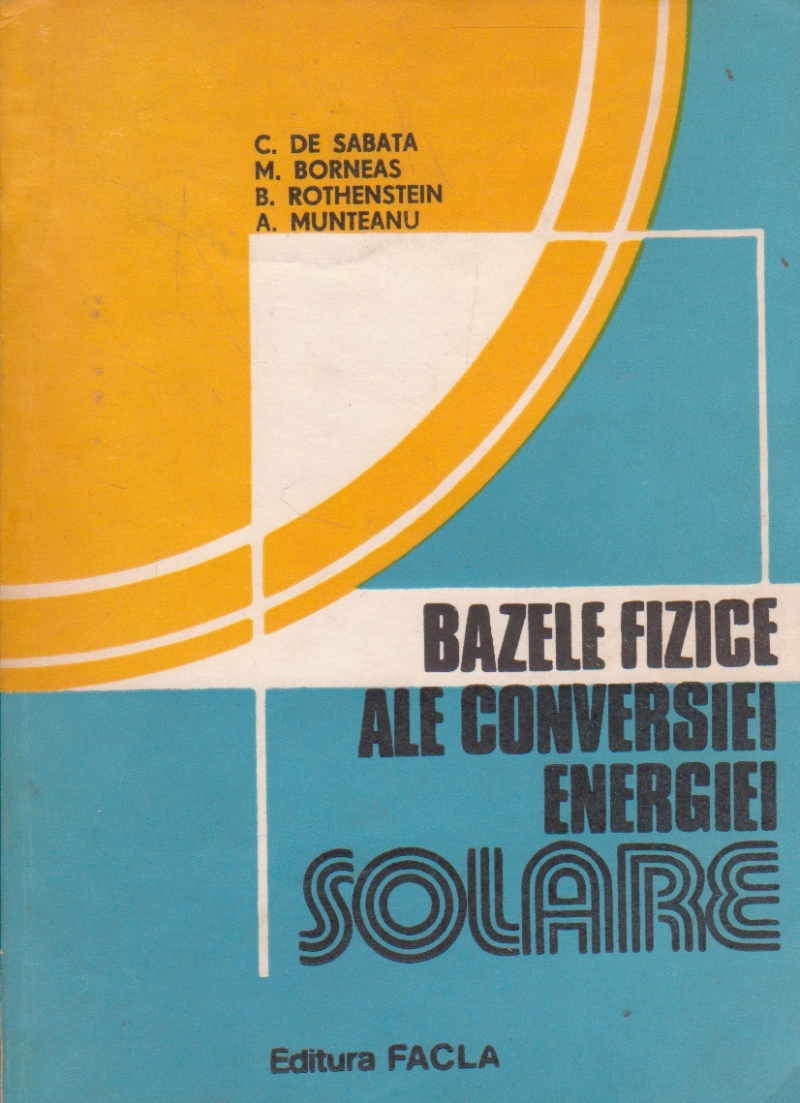 Comandă online cartea "Bazele fizice ale conversiei energiei solare" la 15,90 lei scrisă de Coleta De Sabata, tiparită la editura Facla în anul 1982 cu un număr de 271 pagini. cu plata ramburs sau online cu cardul. Momentan titlul "Bazele fizice ale conversiei energiei solare" nu este disponibil însa vă puteți înscrie pentru a fi notificat în momenul reaprovizionarii.