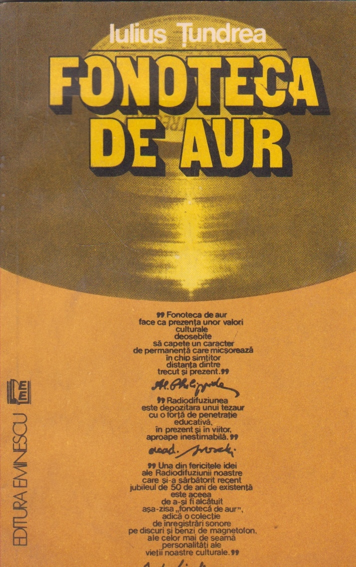Comandă online cartea "Fonoteca de aur" la 10,50 lei scrisă de Iulius Tundrea, tiparită la editura Eminescu în anul 1982 cu un număr de 230 pagini. Livrare din stoc cu plata ramburs sau online cu cardul.