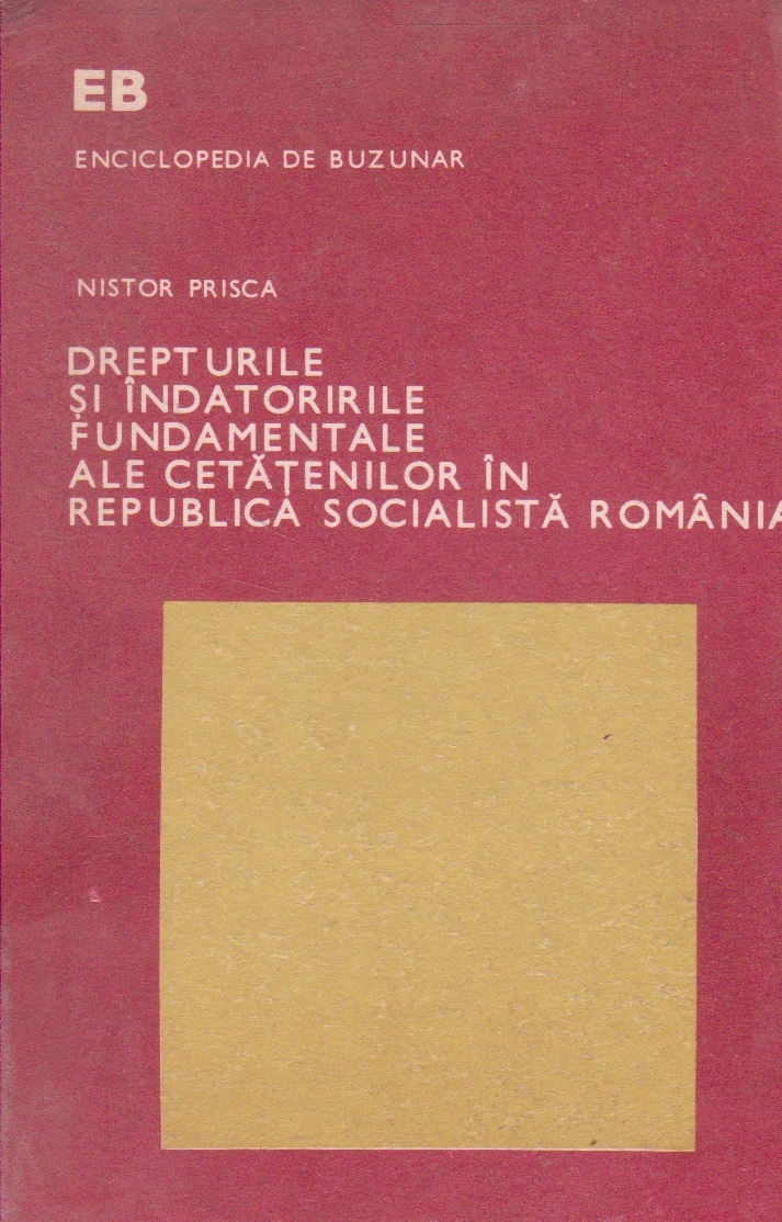 Comandă online Drepturile si indatoririle fundamentale ale cetatenilor in Republica Socialista Romania la 15,90 lei scrisă de Nistor Prisca, tiparită la editura Stiintifica si Enciclopedica în anul 1978 cu un număr de 326 pagini. cu plata ramburs sau online cu cardul. Momentan titlul Drepturile si indatoririle fundamentale ale cetatenilor in Republica Socialista Romania nu este disponibil însa vă puteți înscrie pentru a fi notificat în momenul reaprovizionarii.