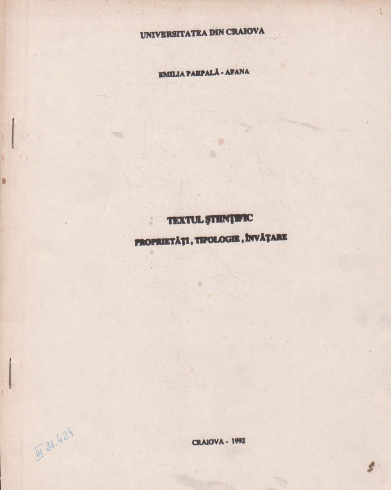 Comandă online cartea "Textul stiintific. Proprietati, tipologie, invatare" la 6,20 lei scrisă de Emilia Parpala Afana, tiparită la editura Universitatea din Craiova în anul 1992 cu un număr de 40 pagini. cu plata ramburs sau online cu cardul. Momentan titlul "Textul stiintific. Proprietati, tipologie, invatare" nu este disponibil însa vă puteți înscrie pentru a fi notificat în momenul reaprovizionarii.