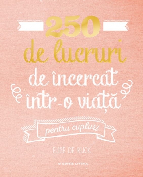 În această carte, găsiți 250 de activități nebunești, amuzante, unice și, uneori, chiar foarte serioase pe care trebuie să le încercați împreună cu persoana iubită. Fie că abia v-ați cunoscut, fie că deja conviețuiți de ani buni, această carte vă va schimba viața. Chiar așa! Veți ajunge să vă cunoașteți mai bine unul pe celălalt. Vă va oferi ocazia să trăiți aventuri palpitante. Cu puțin noroc, cartea aceasta vă va împlini chiar toate visurile! Lăsați-vă scrisori secrete în spatele produselor din raionul cu lactate al supermarketului, refaceți prima voastră întâlnire, dați-vă în leagăn unul pe altul și faceți-vă tatuaje pereche (permanente sau nu). Acestea sunt doar unele dintre activitățile din lista cu cele 250 de idei care vă vor îmbogăți viața și vă vor consolida chiar și mai mult relația. • Include spații în care să lipiți cele mai frumoase sau amuzante poze ale voastre... • Și extra pagini la final pentru propria voastră listă cu dorințe romantice. • O carte numai bună de păstrat pe care o veți ține aproape toată viața! Acceptați provocarea? ELISE DE RIJCK a scris prima ei carte în 2015. 500 de lucruri de încercat într-o viață (în curând, la Editura Litera) s-a dovedit, în scurt timp, a fi un bestseller. Fiindcă totul este mai plăcut în doi (în afară de mersul la toaletă), autoarea vă oferă acest volum, propunându-vă lucruri pe care să le puteți încerca împreună cu alesul/aleasa.
