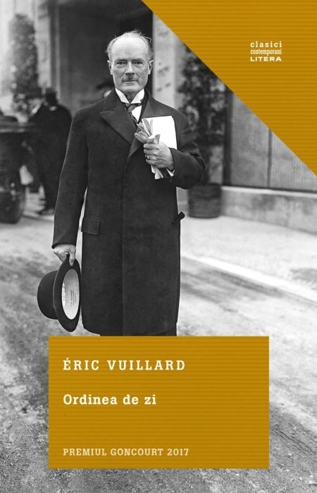 „În Ordinea de zi, laureatul Premiului Goncourt 2017 disecă modul în care o succesiune de mici laşităţi au deschis calea nazismului triumfător.”