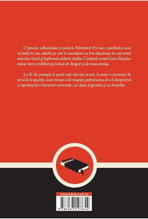 "Fahrenheit 451 merită citită și pentru că oferă speranța salvării, care răsare din mijlocul metaforelor sumbre ce au un ecou puternic și acum, la aproape 70 de ani de la apariția romanului. Ce mai recomand: citiți despre cum s-a născut ideea cărții, cum s-a dezvoltat din câteva proze scurte până a ajuns la forma finală. Interesante sunt și modurile în care a fost cenzurată; în mod ironic, acestea îi dau și mai multă forță. În concluzie: un roman care nu-ți va da pace odată ce-l vei citi." (Simina Răchițeanu)