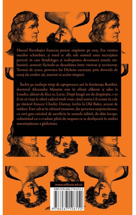 Haosul Revoluţiei franceze pusese stăpânire pe oraş. Era vremea marilor schimbări, și totul se afla sub semnul unui necruţător pericol, în care fărădelegea şi nedreptatea deveniseră armele răzbunării, arareori făcându-se deosebirea între vinovat şi nevinovat. Tocmai de aceea, povestea lui Dickens cucereşte prin dovezile de curaj ale eroilor săi, martori ai acelor timpuri.