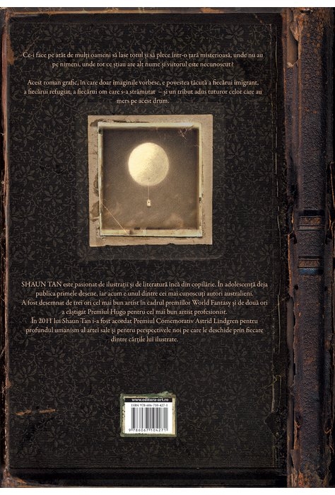 Acest roman grafic, în care doar imaginile vorbesc, e povestea tăcută a fiecărui imigrant, a fiecărui refugiat, a fiecărui om care s-a strămutat – și un tribut adus tuturor celor care au mers pe acest drum.