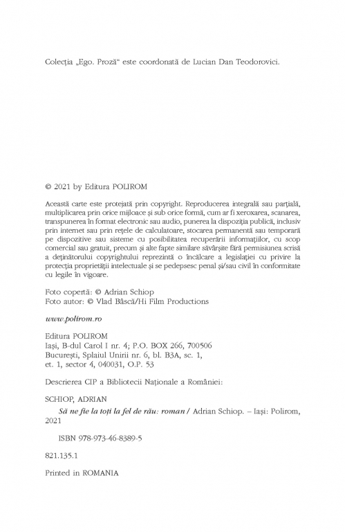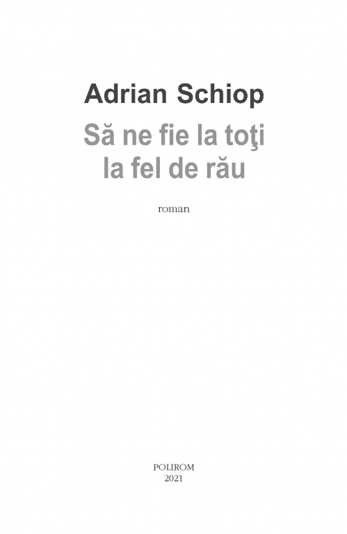 Comandă online cartea "Să ne fie la toți la fel de rău" la 32,10 lei isbn 9789734683895 scrisă de Adrian Schiop, tiparită la editura Polirom face parte din colecția Ego. Proza. Cartea poate fi livrată în circa 5 zile cu plata ramburs sau online cu cardul.