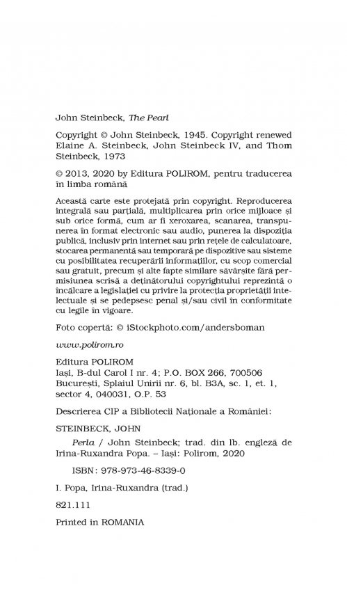 Comandă online Perla (ediție de buzunar) la 26,73 lei isbn 9789734683390 scrisă de John Steinbeck, tiparită la editura Polirom face parte din colecția Top 10+. cu plata ramburs sau online cu cardul. Momentan titlul Perla (ediție de buzunar) nu este disponibil însa vă puteți înscrie pentru a fi notificat în momenul reaprovizionarii.