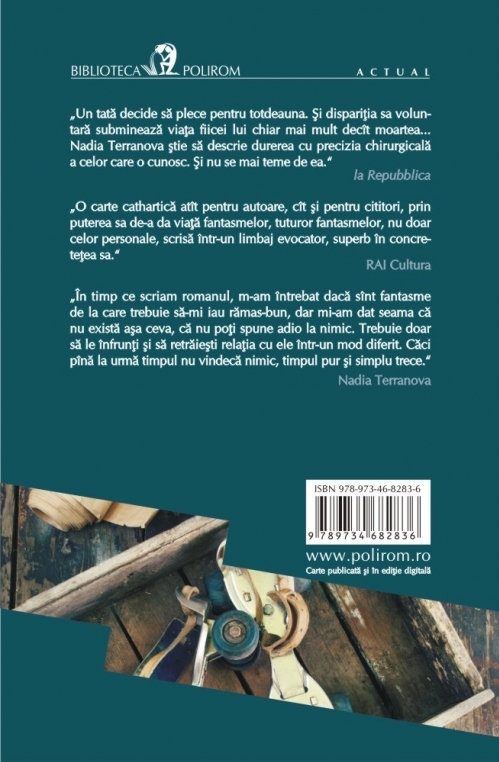 „Un tată decide să plece pentru totdeauna. Şi dispariţia sa voluntară subminează viaţa fiicei lui chiar mai mult decît moartea... Nadia Terranova ştie să descrie durerea cu precizia chirurgicală a celor care o cunosc. Şi nu se mai teme de ea.” (la Repubblica)