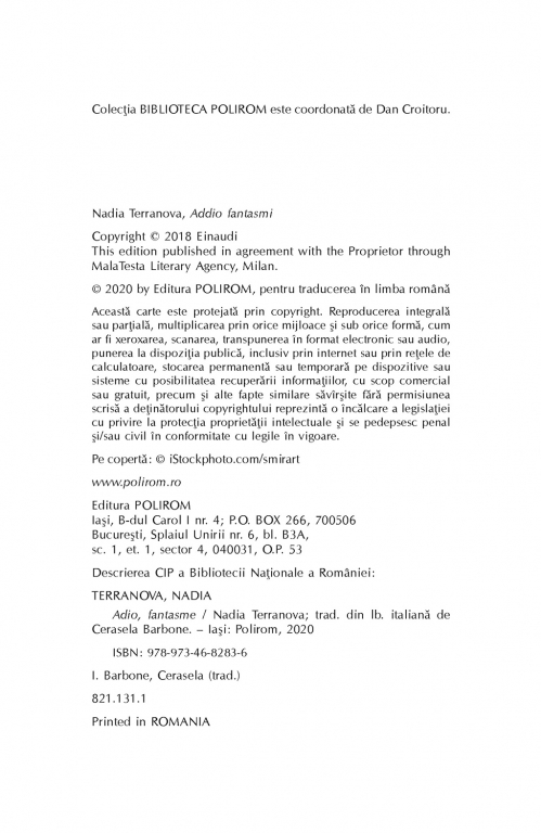 Comandă online cartea "Adio, fantasme" la 10,60 lei isbn 9789734682836 scrisă de Nadia Terranova, tiparită la editura Polirom face parte din colecția BIBLIOTECA POLIROM -> Actual. Cartea poate fi livrată în circa 5 zile cu plata ramburs sau online cu cardul.
