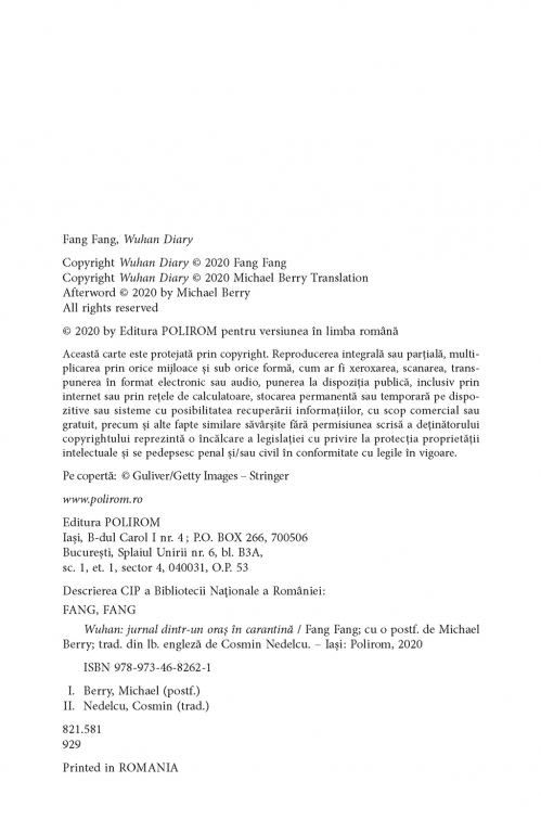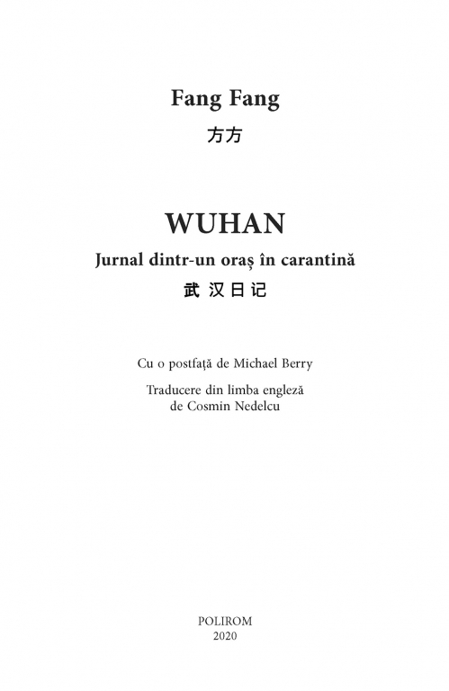 Comandă online Wuhan. Jurnal dintr-un oraș în carantină la 15,90 lei isbn 9789734682621 scrisă de Fang Fang, tiparită la editura Polirom face parte din colecția -. Cartea poate fi livrată în circa 2 zile cu plata ramburs sau online cu cardul.