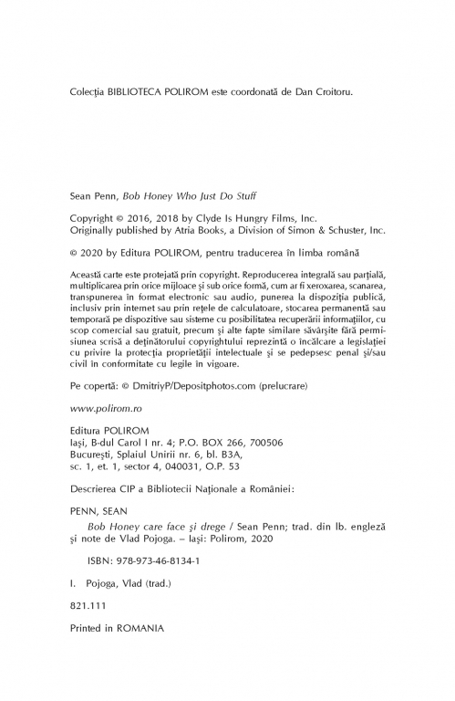 Comandă online Bob Honey care face și drege la 15,90 lei isbn 9789734681341 scrisă de Sean Penn, tiparită la editura Polirom face parte din colecția BIBLIOTECA POLIROM -> Actual. Cartea poate fi livrată în circa 2 zile cu plata ramburs sau online cu cardul.