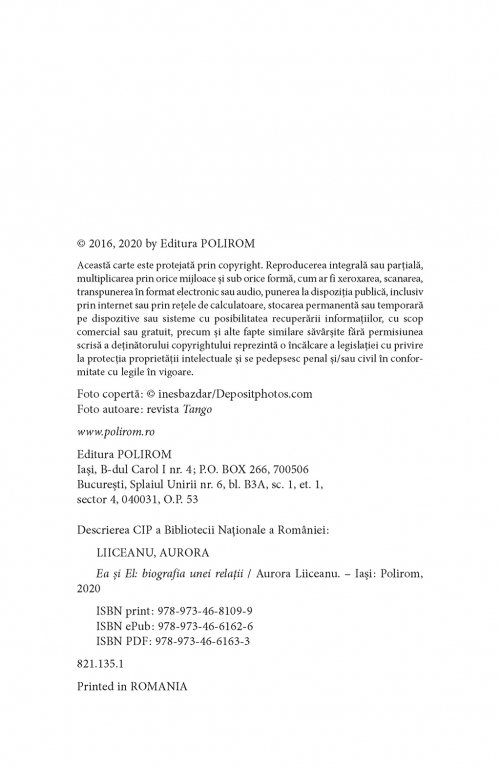 Comandă online Ea și El. Biografia unei relații (ediţia 2020) la 36,90 lei isbn 9789734681099 scrisă de Aurora Liiceanu, tiparită la editura Polirom face parte din colecția Seria de autor Aurora Liiceanu. Cartea poate fi livrată în circa 2 zile cu plata ramburs sau online cu cardul.