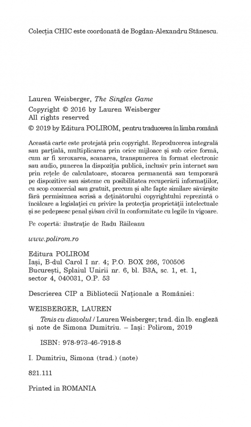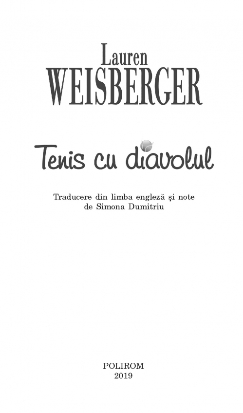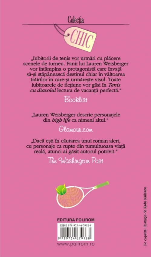 Comandă online Tenis cu diavolul la 15,90 lei isbn 9789734679188 scrisă de Lauren Weisberger, tiparită la editura Polirom face parte din colecția Chic. Cartea poate fi livrată în circa 5 zile cu plata ramburs sau online cu cardul.