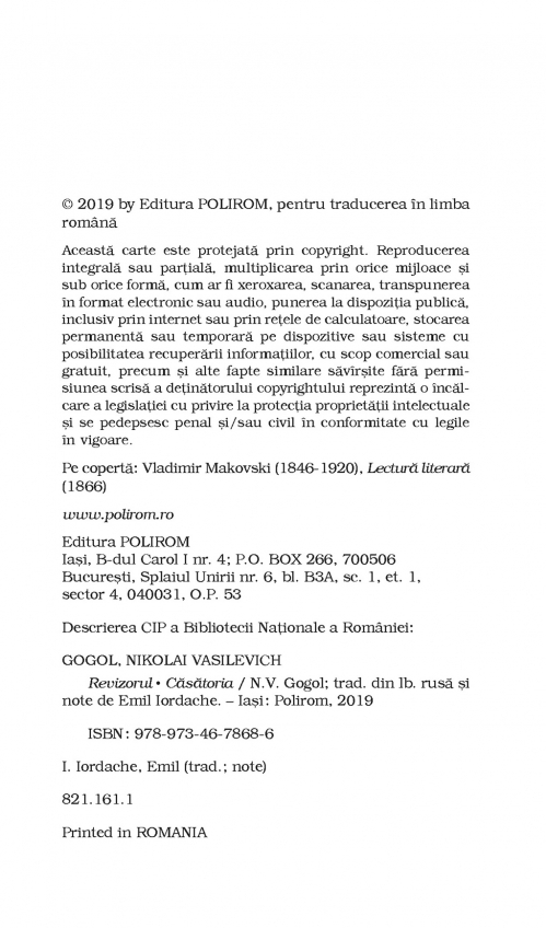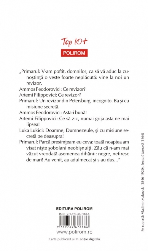 Comandă online Revizorul. Căsătoria (ediţie de buzunar) la 26,73 lei isbn 9789734678686 scrisă de N.V. Gogol, tiparită la editura Polirom face parte din colecția Top 10+. cu plata ramburs sau online cu cardul. Momentan titlul Revizorul. Căsătoria (ediţie de buzunar) nu este disponibil însa vă puteți înscrie pentru a fi notificat în momenul reaprovizionarii.