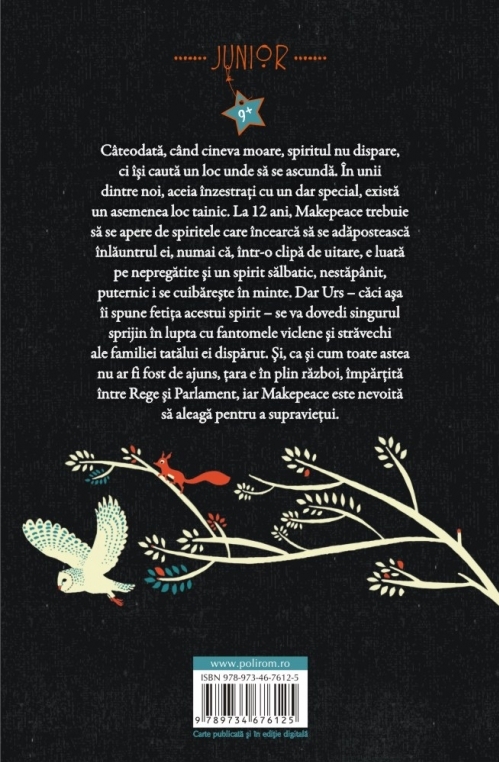 Cîteodată, cînd cineva moare, spiritul nu dispare, ci îşi caută un loc unde să se ascundă. În unii dintre noi, aceia înzestraţi cu un dar special, există un asemenea loc tainic. La 12 ani, Makepeace trebuie să se apere de spiritele care încearcă să se adăpostească înlăuntrul ei, numai că, într-o clipă de uitare, e luată pe nepregătite şi un spirit sălbatic, nestăpînit, puternic i se cuibăreşte în minte. Dar Urs – căci aşa îi spune fetiţa acestui spirit – se va dovedi singurul sprijin în lupta cu fantomele viclene şi străvechi ale familiei tatălui ei dispărut. Şi, ca şi cum toate astea nu ar fi fost de ajuns, ţara e în plin război, împărţită între Rege şi Parlament, iar Makepeace este nevoită să aleagă pentru a supravieţui.
