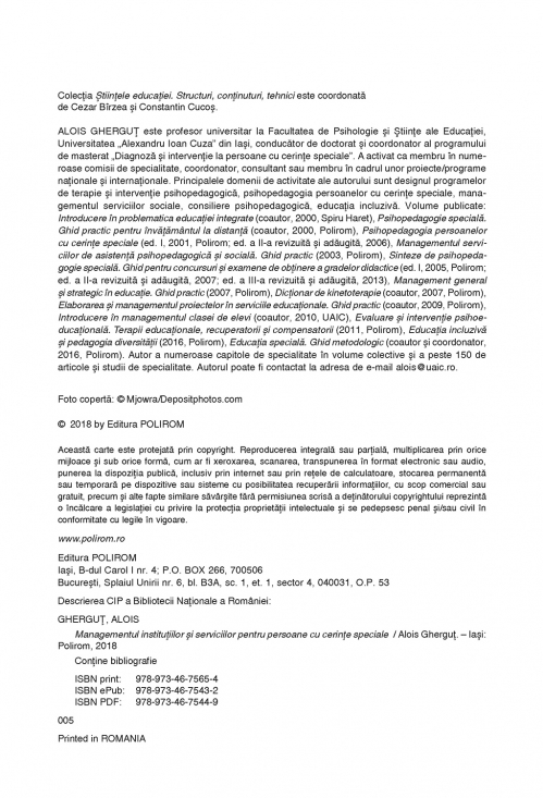 Comandă online Managementul instituţiilor şi serviciilor pentru persoane cu cerinţe speciale la 47,50 lei isbn 9789734675654 scrisă de Alois Ghergut, tiparită la editura Polirom face parte din colecția STIINTELE EDUCATIEI -> Structuri, continuturi, tehnici. Cartea poate fi livrată în circa 2 zile cu plata ramburs sau online cu cardul.