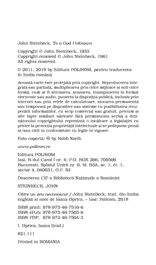Comandă online Către un zeu necunoscut (ediţie de buzunar) la 23,21 lei isbn 9789734675166 scrisă de John Steinbeck, tiparită la editura Polirom face parte din colecția Top 10+. cu plata ramburs sau online cu cardul. Momentan titlul Către un zeu necunoscut (ediţie de buzunar) nu este disponibil însa vă puteți înscrie pentru a fi notificat în momenul reaprovizionarii.