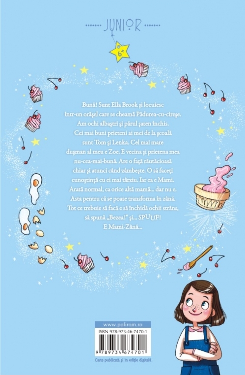 Bună! Sînt Ella Brook şi locuiesc într-un orăşel care se cheamă Pădurea-cu-cireşe. Am ochi albaştri şi părul şaten închis. Cei mai buni prieteni ai mei de la şcoală sînt Tom şi Lenka. Cel mai mare duşman al meu e Zoe. E vecina şi prietena mea nu-cea-mai-bună. Are o faţă răutăcioasă chiar şi atunci cînd zîmbeşte. O să faceţi cunoştinţă cu ei mai tîrziu. Iar ea e Mami. Arată normal, ca orice altă mamă... dar nu e. Asta pentru că se poate transforma în zînă. Tot ce trebuie să facă e să închidă ochii strîns, să spună „Bezea!“ şi... SPUUF! E Mami-Zînă...