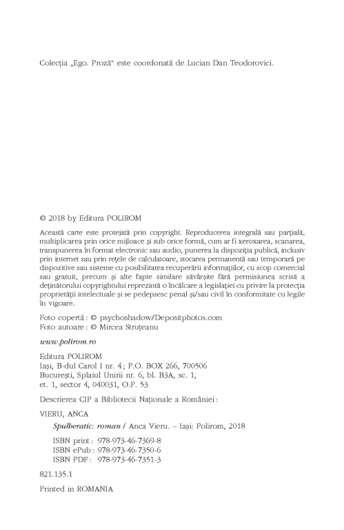 Comandă online Spulberatic la 37,70 lei isbn 9789734673698 scrisă de Anca Vieru, tiparită la editura Polirom face parte din colecția Ego. Proza. Cartea poate fi livrată în circa 2 zile cu plata ramburs sau online cu cardul.