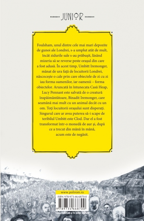 Foulsham, unul dintre cele mai mari depozite de gunoi ale Londrei, s-a umplut atît de mult, încît zidurile sale s-au prăbuşit, lăsînd mizeria să se reverse peste oraşul din care a fost adusă. În acest timp, Umbitt Iremonger, mînat de ura faţă de locuitorii Londrei, născoceşte o cale prin care obiectele de zi cu zi iau forma oamenilor, iar oamenii – forma obiectelor. Aruncată în întunecata Casă Heap, Lucy Pennant este salvată de o creatură înspăimîntătoare, Binadit Iremonger, care seamănă mai mult cu un animal decît cu un om. Toţi locuitorii oraşului sînt disperaţi. Singurul care ar avea puterea să-i scape de teribilul Umbitt este Clod. Dar el a fost transformat într-o monedă de aur şi, după ce a trecut din mînă în mînă, acum este de negăsit.