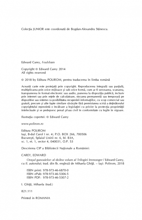 Comandă online Oraşul gunoaielor. Al doilea volum al Trilogiei Iremonger la 10,60 lei isbn 9789734668700 scrisă de Edward Carey, tiparită la editura Polirom face parte din colecția JUNIOR. Cartea poate fi livrată în circa 2 zile cu plata ramburs sau online cu cardul.