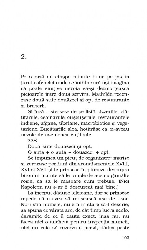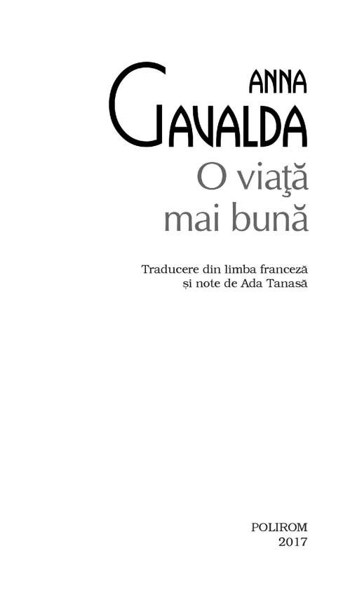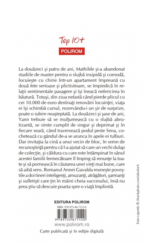 La douăzeci şi patru de ani, Mathilde şi-a abandonat studiile de master pentru o slujbă insipidă şi comodă, locuieşte cu chirie într-un apartament împreună cu două fete serioase şi plictisitoare, se împiedică în relaţii sentimentale pasagere şi îşi îneacă nefericirea în băutură. Totuşi, din ziua nefastă cînd pierde plicul cu cei 10.000 de euro destinaţi renovării locuinţei, viaţa ei îşi schimbă cursul, rezervîndu-i un şir de surprize, poate o iubire neaşteptată. La douăzeci şi şase de ani, Yann trebuie să se mulţumească cu o slujbă abrutizantă, se simte cumplit de singur şi deprimat şi în fiecare seară, cînd traversează podul peste Sena, cochetează cu gîndul de-a se arunca în apele ei tulburi. Dar invitaţia la cină a unui vecin de bloc, în semn de recunoştinţă pentru că l-a ajutat să care un vechi dulap de colecţie, şi căldura cu care este întîmpinat în sînul acestei familii fermecătoare îl împing să renunţe la toate şi să pornească în căutarea unei vieţi mai bune, care să aibă sens. Romanul Annei Gavalda reuneşte poveştile a doi tineri inteligenţi, amuzanţi, atrăgători, şarmanţi şi sufletişti care ţin în mîini cheia succesului, însă nu prea ştiu să descuie poarta spre o viaţă împlinită.