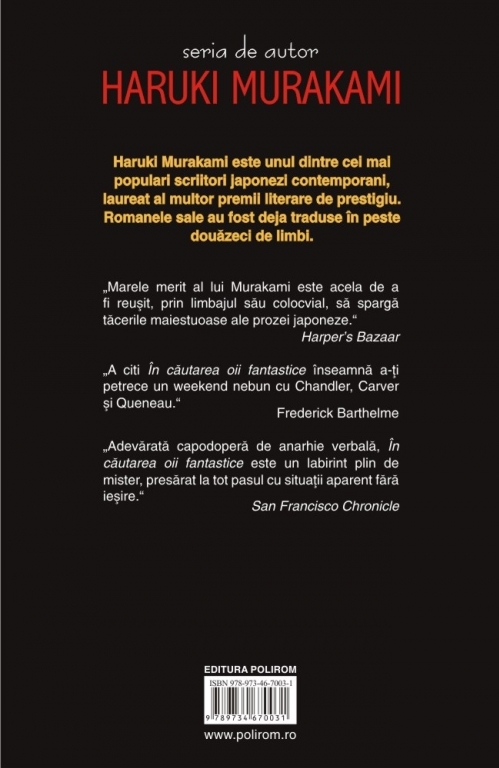 Seria de autor "Haruki Murakami". cu plata ramburs sau online cu cardul. Momentan titlul "În căutarea oii fantastice (ediţia 2017)" nu este disponibil însa vă puteți înscrie pentru a fi notificat în momenul reaprovizionarii.">