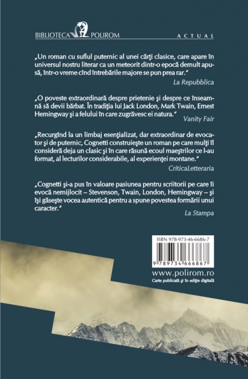 „Cognetti şi-a pus în valoare pasiunea pentru scriitorii pe care îi evocă nemijlocit –Stevenson, Twain, London, Hemingway – şi îşi găseşte vocea autentică pentru a spune povestea formării unui caracter.” (La Stampa)