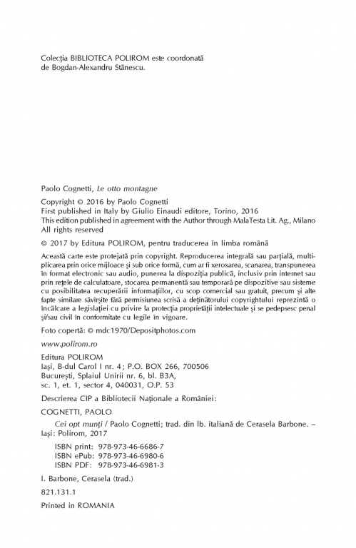 Comandă online Cei opt munți la 31,70 lei isbn 9789734666867 scrisă de Paolo Cognetti, tiparită la editura Polirom face parte din colecția BIBLIOTECA POLIROM -> Actual. cu plata ramburs sau online cu cardul. Momentan titlul Cei opt munți nu este disponibil însa vă puteți înscrie pentru a fi notificat în momenul reaprovizionarii.