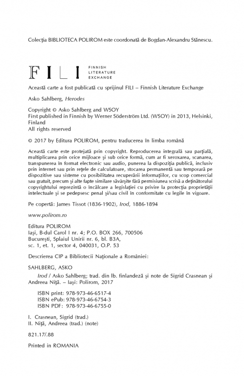 Această carte a fost publicată cu sprijinul FILI – Finnish Literature Exchange.