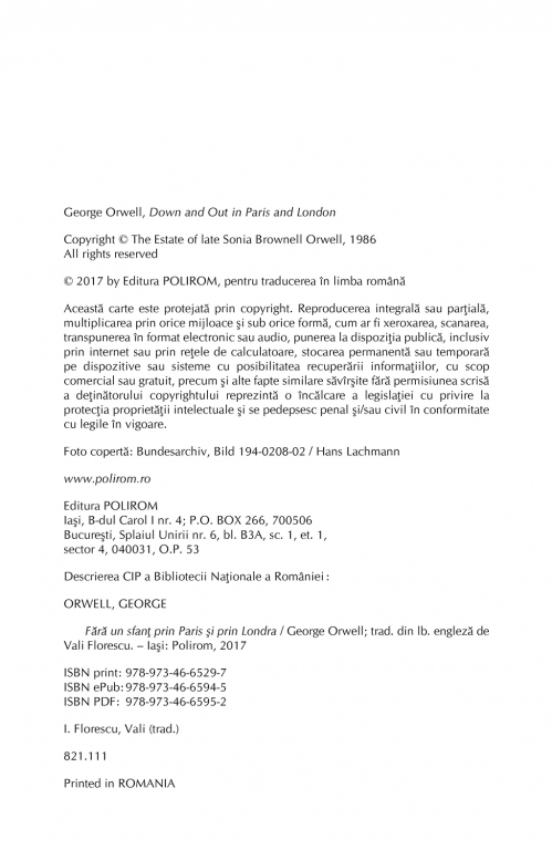 Comandă online Fără un sfanţ prin Paris şi prin Londra la 32,45 lei isbn 9789734665297 scrisă de George Orwell, tiparită la editura Polirom face parte din colecția BIBLIOTECA POLIROM -> Esential. cu plata ramburs sau online cu cardul. Momentan titlul Fără un sfanţ prin Paris şi prin Londra nu este disponibil însa vă puteți înscrie pentru a fi notificat în momenul reaprovizionarii.