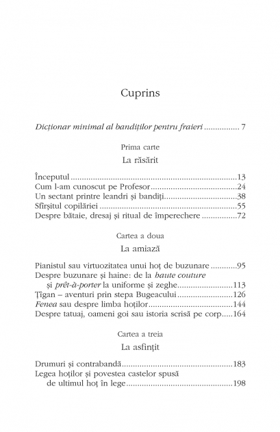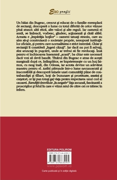 Un băiat din Bugeac, crescut şi educat de o familie exemplară de sectanţi, descoperă o lume cu totul diferită de orice văzuse pînă atunci: altă etică, alte valori şi alte reguli. Iar oamenii ei arată, se îmbracă, vorbesc, gîndesc, acţionează şi cîntă altfel. Aceasta e „împărăţia hoţilor” – oameni tatuaţi straniu, care au ales să-şi construiască o societate proprie, nesupusă instituţiilor oficiale, şi pentru care normalitatea e strict interzisă. Chiar şi sectanţii îi consideră „îngeri căzuţi”. Iar dacă nu pot fi salvaţi, sînt aruncaţi în puşcării, unde ar trebui să fie reeducaţi. Însă pentru ei închisoarea înseamnă „acasă”, ba chiar este necesară dacă vrei să devii bandit. Tînărul din Bugeac e atras de aceşti marginali după ce, întîmplător, se împrieteneşte cu un hoţ faimos, cu rang înalt, din Odessa, iar acesta devine un adevărat maestru pentru el. Astfel pătrunde într-o lume necunoscută şi inaccesibilă şi descoperă tainele unei comunităţi pline de contrabandişti şi tîlhari, hoţi de buzunare şi prostituate, asasini şi cerşetori, ce îşi pun totuşi gaj viaţa pentru respectarea unui cod al onoarei. Bandiţii dezvăluie „în negativ” faţa ascunsă, fascinantă a proscrişilor şi felul în care e văzut raiul de către cei ce trăiesc în infern.