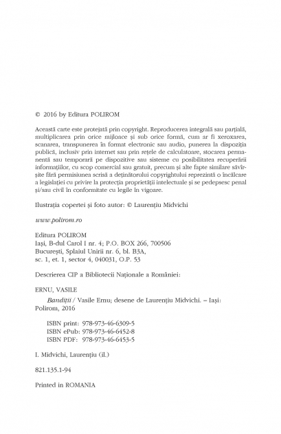 Comandă online cartea "Banditii" la 15,90 lei isbn 9789734663095 scrisă de Vasile Ernu, tiparită la editura Polirom face parte din colecția Ego-grafii. cu plata ramburs sau online cu cardul. Momentan titlul "Banditii" nu este disponibil însa vă puteți înscrie pentru a fi notificat în momenul reaprovizionarii.