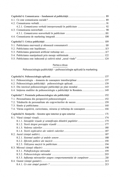 Cunostintele de psihosociologie sint obligatorii pentru toti cei ce activeaza in industria publicitatii si in special pentru redactorii de reclame. Perspectiva psihosociologica ajuta la depasirea viziunii simpliste a comunicarii liniare si a plasarii consumatorilor intr-un vid social, ca si cum acestia ar actiona independent de contextul care influenteaza receptarea mesajului publicitar. Fie ca sint texte in presa scrisa, spoturi pentru radio sau televiziune ori afisaj stradal, reclamele trebuie sa tina cont de specificul publicului caruia i se adreseaza. Volumul le ofera studentilor si specialistilor in stiintele socioumaniste si in stiintele comunicarii numeroase idei si analize ce aprofundeaza cunoasterea privind relatiile interpersonale in societate si influenta sociala prin mass-media si publicitate: de la trucuri menite sa atraga atentia potentialilor consumatori, pina la aspectele psihosociologice esentiale in conceperea reclamelor, precum cultura locala, sexul, virsta, religia si clasa sociala, sau situatiile in care sint adecvate anumite tipuri de mesaje publicitare.