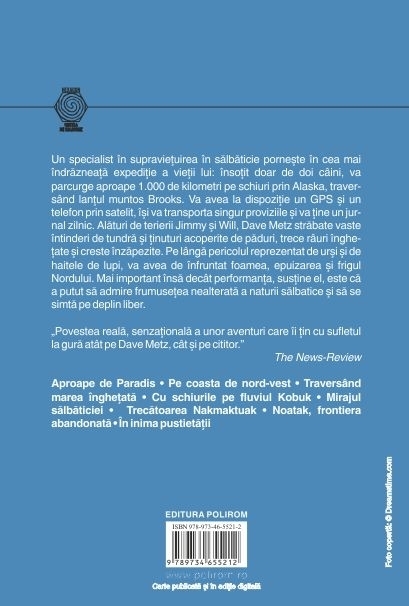 Un specialist în supravieţuirea în sălbăticie porneşte în cea mai îndrăzneaţă expediţie a vieţii lui: însoţit doar de doi cîini, va parcurge aproape 1.000 de kilometri pe schiuri prin Alaska, traversînd lanţul muntos Brooks. Va avea la dispoziţie un GPS şi un telefon prin satelit, îşi va transporta singur proviziile şi va ţine un jurnal zilnic. Alături de terierii Jimmy şi Will, Dave Metz străbate vaste întinderi de tundră şi ţinuturi acoperite de păduri, trece rîuri îngheţate şi creste înzăpezite. Pe lîngă pericolul reprezentat de urşi şi de haitele de lupi, va avea de înfruntat foamea, epuizarea şi frigul Nordului. Mai important însă decît performanţa, susţine el, este că a putut să admire frumuseţea nealterată a naturii sălbatice şi să se simtă pe deplin liber.