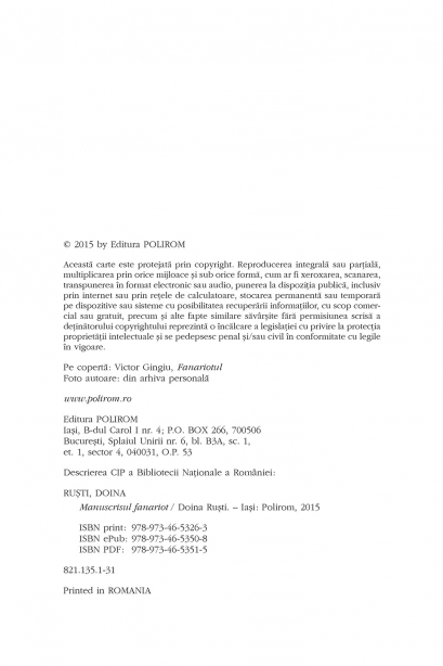 Categorii: Beletristica, Carte nefolosită, Literatura romaneasca