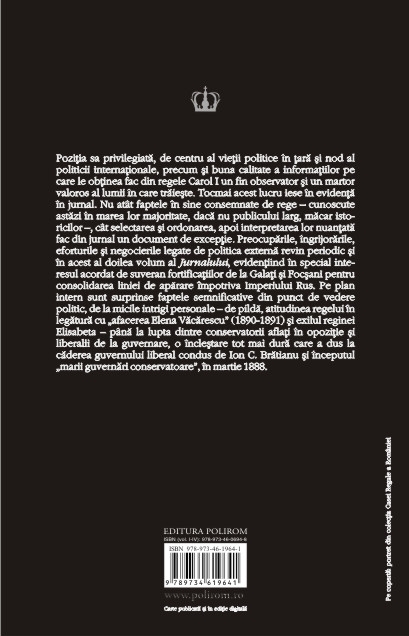 Pozitia sa privilegiata, de centru al vietii politice in tara si nod al politicii internationale, precum si buna calitate a informatiilor pe care le obtinea fac din regele Carol I un fin observator si un martor valoros al lumii in care traieste. Tocmai acest lucru iese in evidenta in jurnal. Nu atit faptele in sine consemnate de rege – cunoscute astazi in marea lor majoritate, daca nu publicului larg, macar istoricilor –, cit selectarea si ordonarea, apoi interpretarea lor nuantata fac din jurnal un document de exceptie. Preocuparile, ingrijorarile, eforturile si negocierile legate de politica externa revin periodic si in acest al doilea volum al Jurnalului, evidentiind in special interesul acordat de suveran fortificatiilor de la Galati si Focsani pentru consolidarea liniei de aparare impotriva Imperiului Rus. Pe plan intern sint surprinse faptele semnificative din punct de vedere politic, de la micile intrigi personale – de pilda, atitudinea regelui in legatura cu „afacerea Elena Vacarescu” (1890-1891) si exilul reginei Elisabeta – pina la lupta dintre conservatorii aflati in opozitie si liberalii de la guvernare, o inclestare tot mai dura care a dus la caderea guvernului liberal condus de Ion C. Bratianu si inceputul „marii guvernari conservatoare”, in martie 1888.