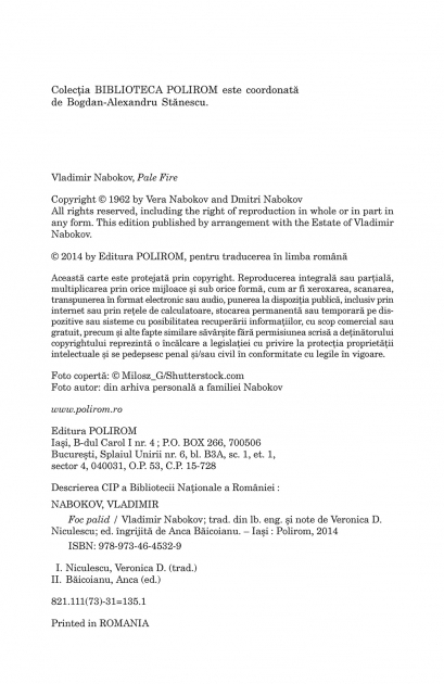 Seria de autor "Vladimir Nabokov". cu plata ramburs sau online cu cardul. Momentan titlul "Foc palid" nu este disponibil însa vă puteți înscrie pentru a fi notificat în momenul reaprovizionarii.">