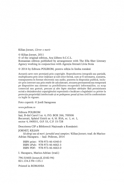 „Sa alergi sau sa mori este jurnalul unui campion, o filosofie de viata si o lectie pentru noi toti.” (La Vanguardia)
