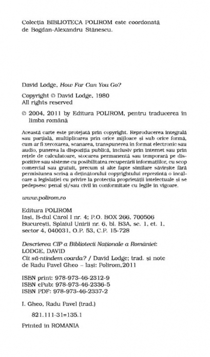 Colecția: BIBLIOTECA POLIROM -> Seria de autor "David Lodge"