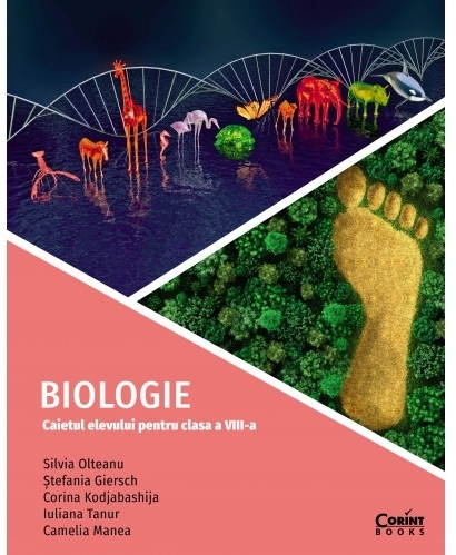 Biologie. Caietul elevului pentru clasa a VIII-a, conceput pe baza noii programe de biologie, cuprinde teme diverse, de la activități de învățare la exerciții, exprimarea unor păreri, teme de portofoliu, rezolvarea unor jocuri interactive, interpretarea unor grafice, scheme etc., dar și câteva pagini libere unde fi ecare elev își poate exprima creativitatea sau poate realiza alte teme propuse de profesorul de la clasă. Astfel, învățarea diverselor noțiuni devine mai ușoară șimai plăcută. Datorită formei atractive în care este conceput, cu sublinieri, culori captivante și imagini sugestive, caietul poate fi păstrat și utilizat și în anii următori, pentru reactualizarea cunoștințelor. Testele de evaluare vor putea fi rezolvate de elev direct în caiet, apoi pot fi utilizate pentru evaluare și notare, autoevaluare sau interevaluare. Lucrarea se remarcă și printr-o colecție de filmulețe didactice care pot fi vizualizate, accesând linkurile tematice prin intermediul unor coduri QR, de pe orice dispozitiv mobil dotat cu cameră video și acces la internet.